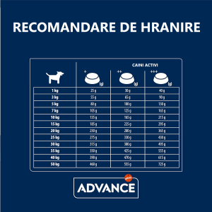 Cantitatile pot varia in functie de varsta, nivelul de activitate si starea fiziologica a cainelui. Asigurati intotdeauna apa proaspata la discretie.