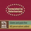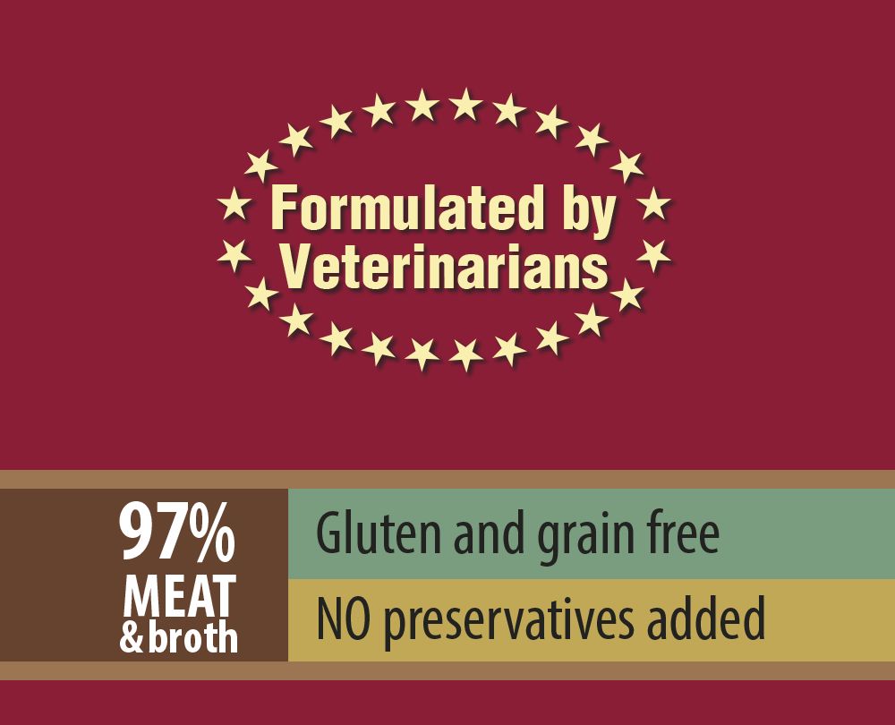 Compoziție: Pui (inimi de pui, carne de pui, ficat de pui, pipote de pui, gâturi de pui) 55%, supă de pui 27%, rață (inimi de rață, pipote de rață, gâturi de rață) 15%, portocale 2%, minerale 1%.