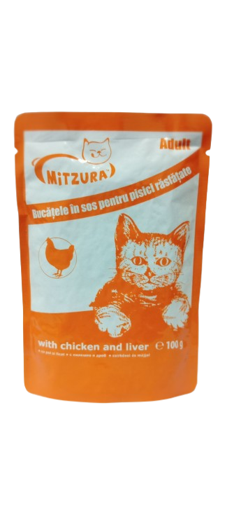 Reteta delicioasa cu textura fina de pate, preparata cu ficat si carne de pui, special formulata pentru a sustine sanatatea si vitalitatea pisicilor adulte. Ofera un aport nutritional complet si un gust placut, apreciat chiar si de pisicile mofturoase.
