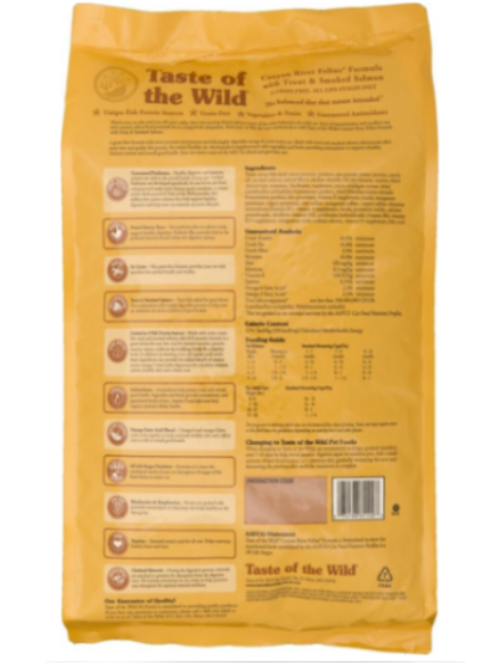 Taste of the Wild Canyon River este o hrana uscata completa, special formulata pentru toate pisicile – indiferent de varsta sau rasa. Cu o reteta bogata in pastrav si somon afumat in coaja de lemn, aceasta hrana ofera un gust delicios si proteine de inalta calitate, provenite exclusiv din peste.