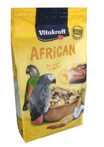 Vitakraft Menu Jako 750 g este un meniu de bază premium, special formulat pentru nevoile nutriționale ale papagalilor mari africani. Rețeta conține roșcovă și smochine, ingrediente inspirate din hrana lor naturală, oferind o dietă echilibrată și gustoasă, apropiată de habitatul lor sălbatic.Acest amestec bogat în proteine, vitamine și minerale esențiale susține energia și vitalitatea păsărilor, în timp ce vitamina A contribuie la un penaj sănătos, strălucitor și bine colorat. În plus, combinația optimă de calciu și fosfor ajută la dezvoltarea și menținerea unei oase solide și rezistente.